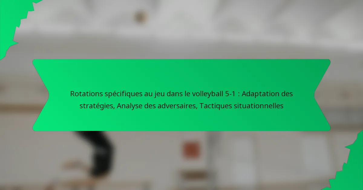Les rotations spécifiques au jeu dans le volleyball 5-1 font référence à des stratégies adaptées qui optimisent le positionnement et les rôles des joueurs en fonction des forces de l’équipe et des faiblesses de l’adversaire. Ce système améliore le jeu en garantissant que les joueurs occupent leurs positions les plus efficaces lors de diverses situations de match.