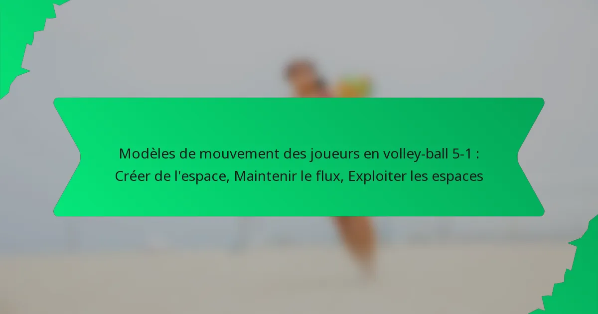 La formation de volley-ball 5-1 utilise un seul passeur pour améliorer la cohérence et la distribution stratégique du ballon, avec cinq attaquants en première ligne qui créent des opportunités offensives dynamiques. En se positionnant stratégiquement, les joueurs peuvent créer de l’espace, maintenir le flux et exploiter les failles dans la défense adverse, assurant ainsi des transitions efficaces entre l’attaque et la défense. Comprendre ces schémas de mouvement est crucial pour maximiser la performance et réussir sur le terrain.