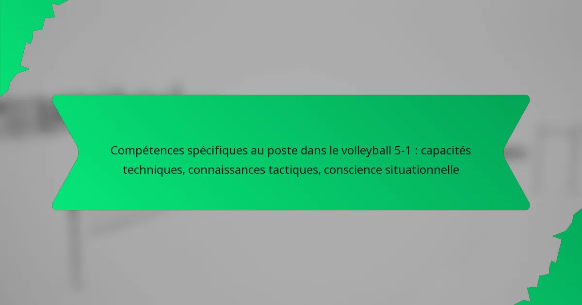 Dans le volleyball 5-1, maîtriser les compétences spécifiques à chaque position est essentiel pour optimiser la performance de l’équipe. Chaque rôle exige des capacités techniques uniques, des connaissances tactiques et une conscience situationnelle, qui améliorent collectivement la communication et la prise de décision sur le terrain. En comprenant ces aspects critiques, les joueurs peuvent contribuer efficacement au succès de leur équipe et s’adapter à la nature dynamique du jeu.