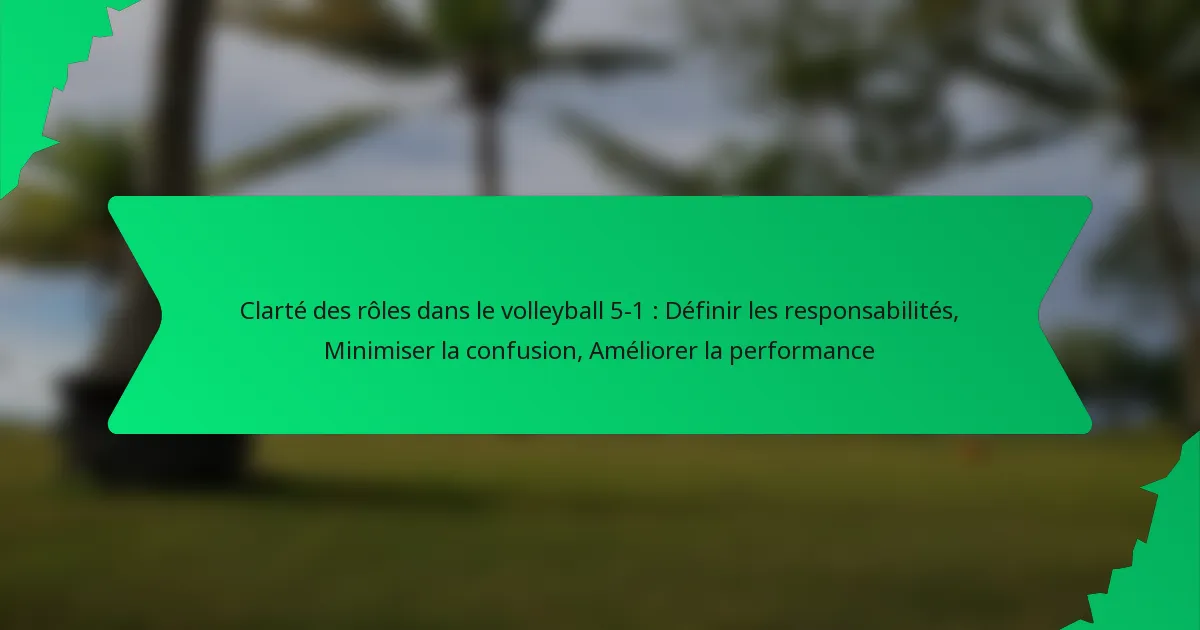 La clarté des rôles dans le volleyball 5-1 est essentielle pour réduire la confusion parmi les joueurs, garantissant que chacun comprend ses responsabilités sur le terrain. Lorsque les joueurs connaissent leurs rôles spécifiques, ils peuvent communiquer plus efficacement, ce qui conduit à une meilleure cohésion d’équipe et à une performance globale améliorée.