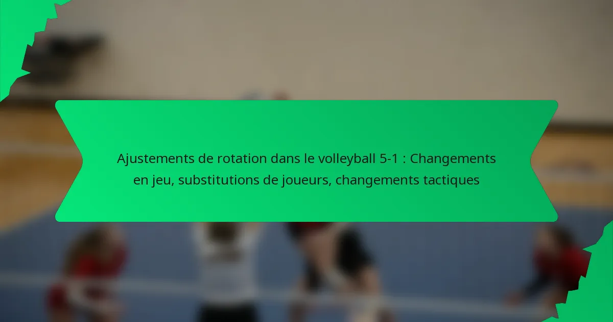 Les ajustements de rotation dans le volleyball 5-1 sont essentiels pour optimiser les positions des joueurs et améliorer la performance globale de l’équipe pendant un match. Ces changements stratégiques, qui incluent des modifications en cours de jeu, des substitutions de joueurs et des changements tactiques, permettent aux équipes de s’adapter dynamiquement aux conditions évolutives du jeu et aux forces de leurs adversaires.
