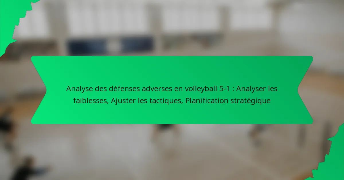 Identifier les faiblesses dans les défenses 5-1 implique une évaluation systématique de la couverture des joueurs, des lacunes de formation et des schémas prévisibles. En analysant ces aspects, les équipes peuvent ajuster leurs tactiques pour exploiter efficacement les vulnérabilités.